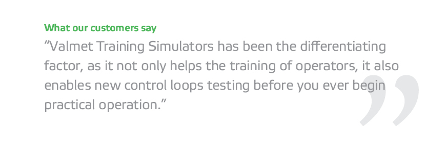 Valmet Training Simulators are effective training tools for operators and other mill staff. As part of Valmet’s integrated training package, these highly realistic simulators play a vital role in ensuring successful start-ups and efficient long-term operation of key process and machine modules.