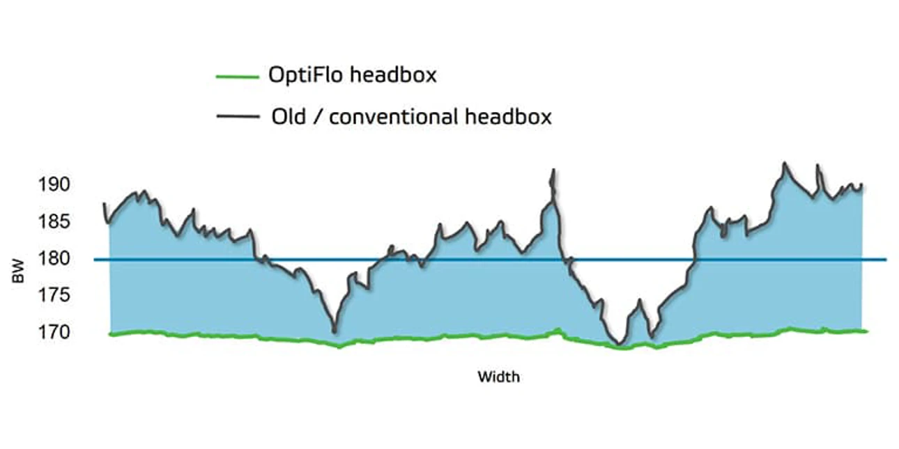 OptiFlo Fourdrinier headbox – example for containerboard: Better raw material economy of flat profiles