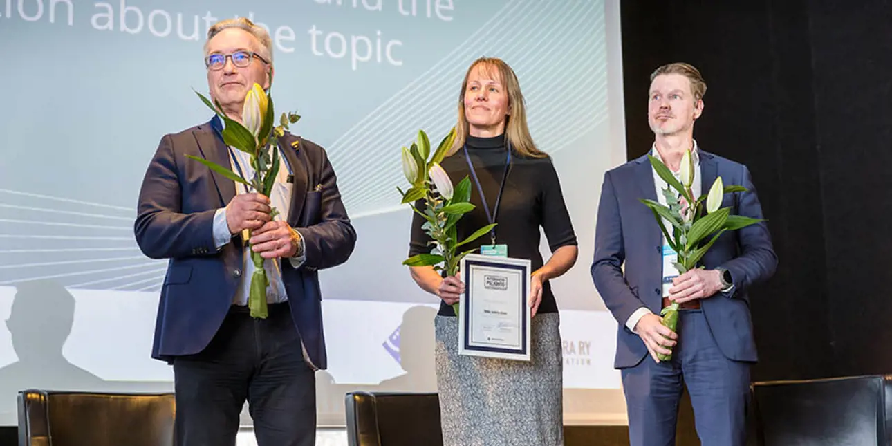 Jukka Ylijoki, Satu Mäkelä, and Petri Tiihonen from Valmet’s Automation Systems business line received the award. The award also included a €5000 scholarship, which Valmet donated to the Tampere University of Applied Sciences (TAMK) at the award ceremony.