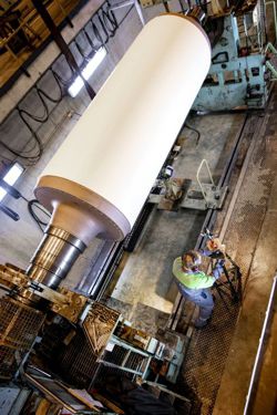 Roll balance is influenced by face length and core construction and is due to the deflection of a roll when rotated at a given speed. This deflection is measured at the center of the roll face while the roll is turning at the specific speed. It is especially important that deflection be corrected before covering the roll.