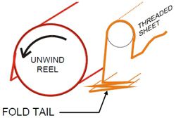 4. Neatly fold the tail of the threaded sheet on the floor in front of the reel.