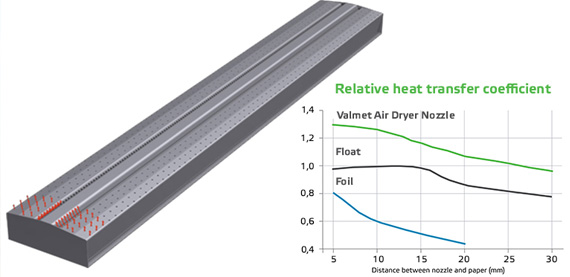 OptiDry air dryers are designed for high drying capacity. Aided by patented air dryer nozzles, the dryers achieve uniform evaporation with minimum energy consumption, high efficiency and excellent runnability. With these exceptional nozzles, it is possible to upgrade your old air dryers into new high evaporation, low energy consumption air dryers.