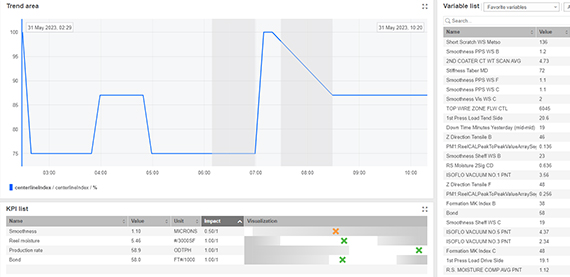 Valmet Centerline Advisor is an advanced application for comparing the current process status to the centerline of the best historical performance.